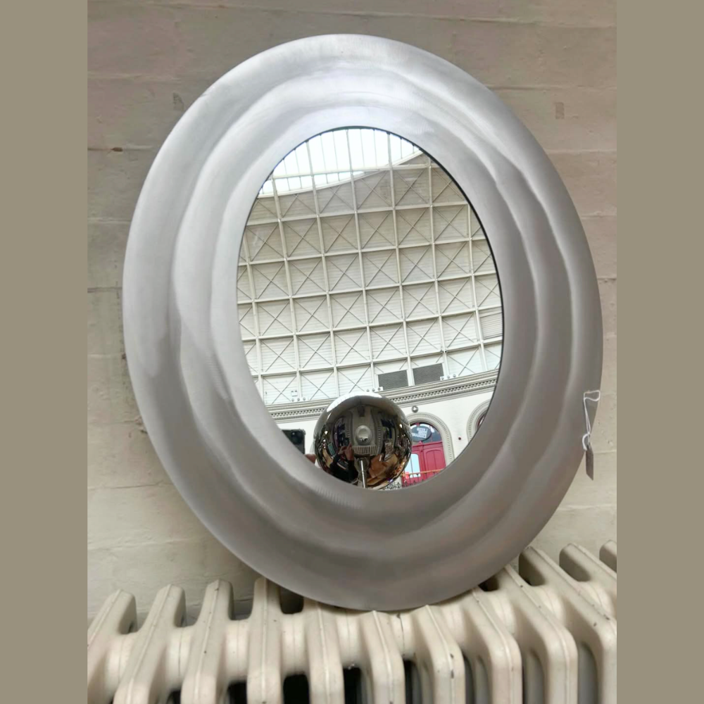 Pewter framed modern mirror.